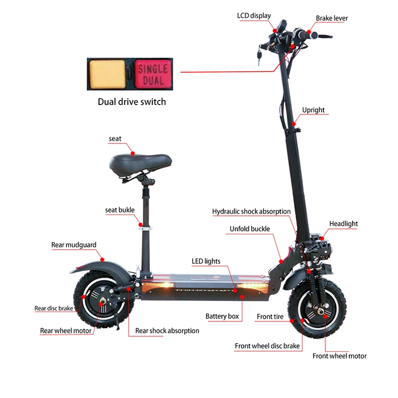 Product Name: Erwachsene Elektro-scooter 48V E-roller Mit 20-26 Ah Batterie Wasserdichte Tretroller 60 Km/h Zwei Motor Langes Brett Skateboard