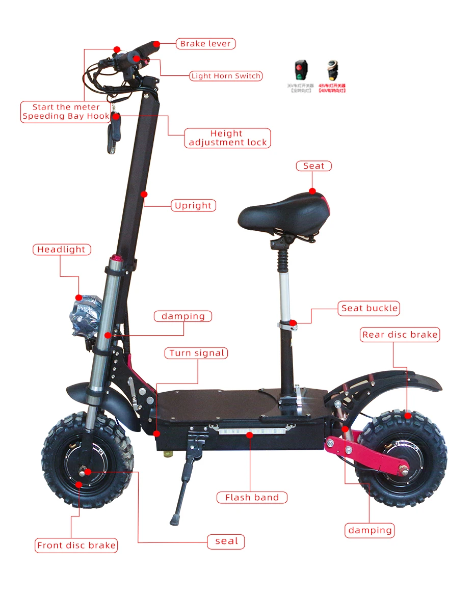 Product Name: JS Elektrische Roller Off Road Reifen 3200W 60V 36A Max Last 200kg Max Laufleistung 105km Skateboard Elektrische Roller Erwachsene Patinete