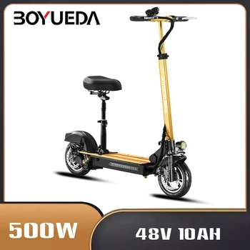 Product Name: BOYUEDA 500W 48V 10AH Erwachsene Elektrische Roller Mit Sitz 10 Zoll E-roller Frauen Mobilität Longboard Skateboard Schritt Patinete
