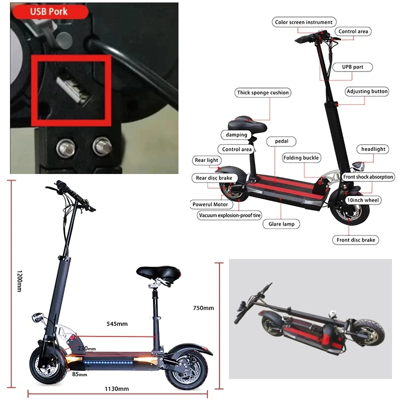 Product Name: EU Lager Duty Freies 48V 500W Falten Elektro Roller Zwei Räder Rücklicht Front Licht 10 Zoll E-roller Spanien Lager